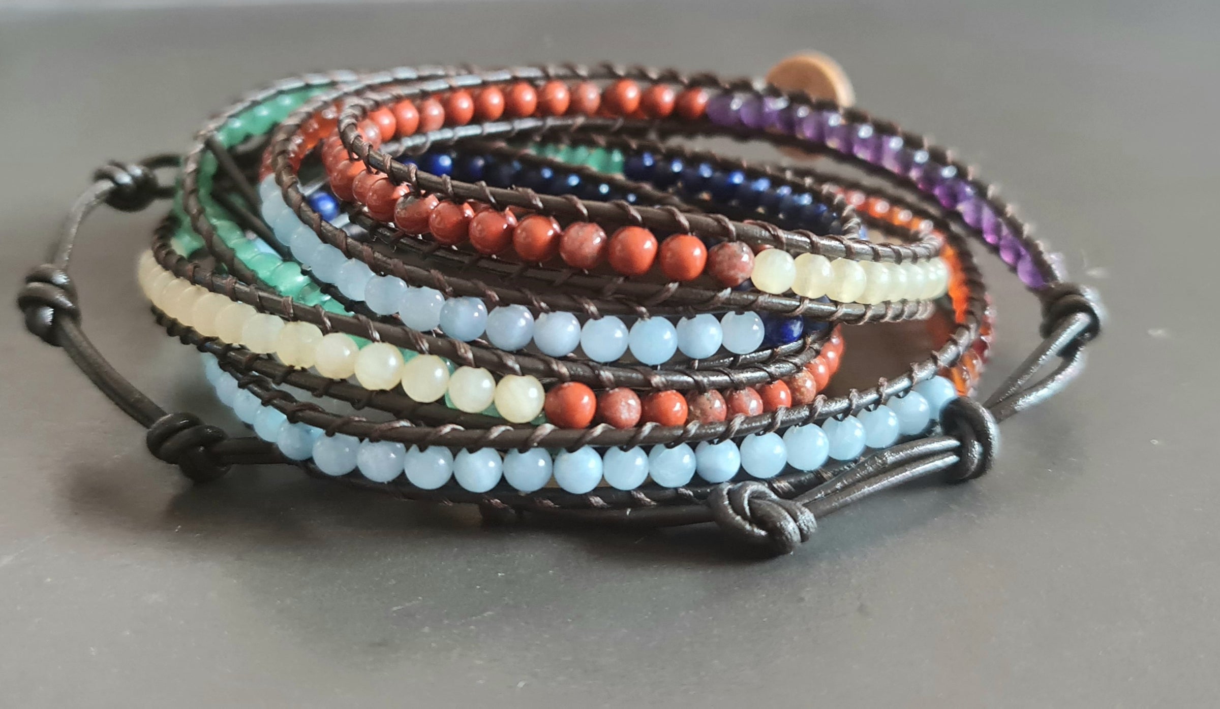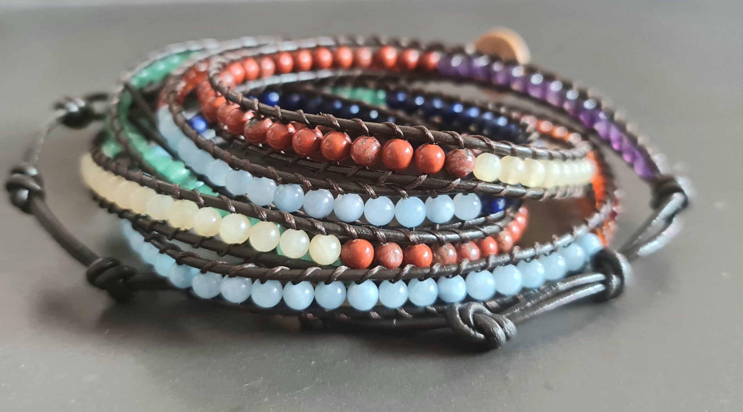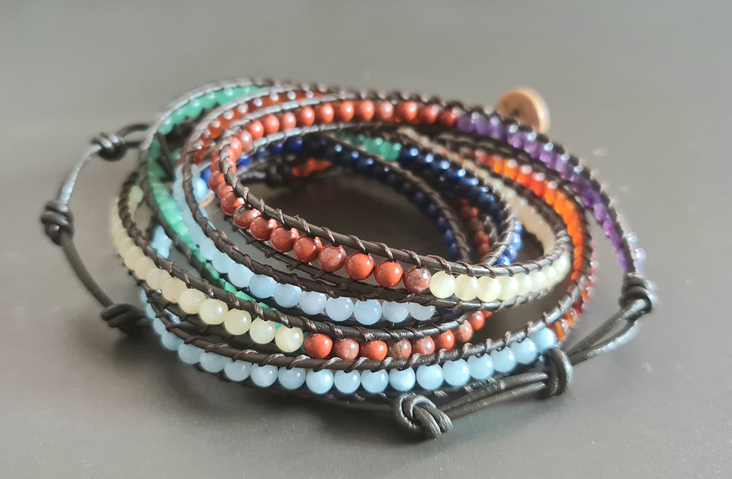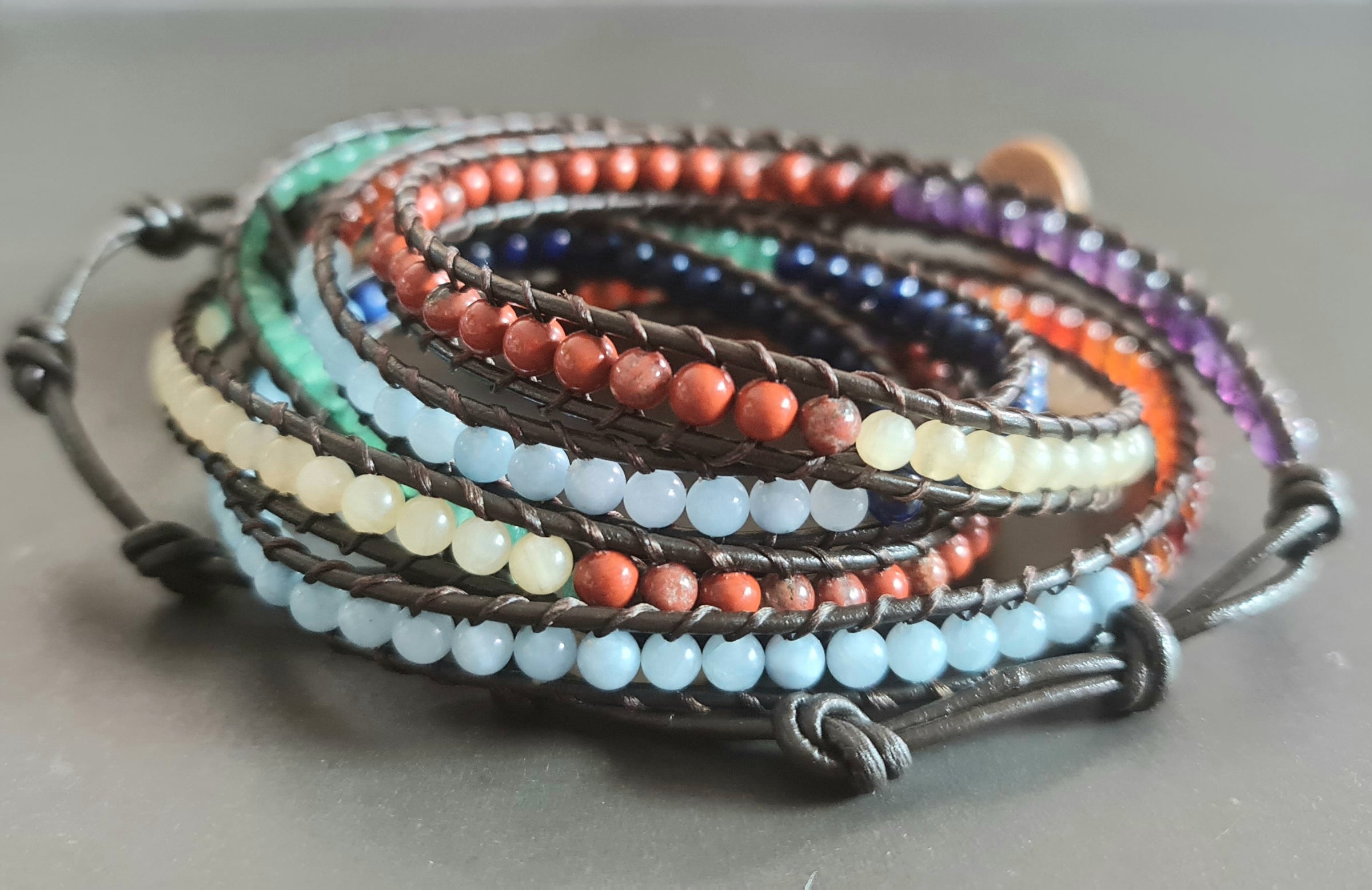 Chakra Brown Leather Wrap Bracelet/Anklet,Leather Wrap, Unisex Bracelet, Men Bracelet, Women Bracelet