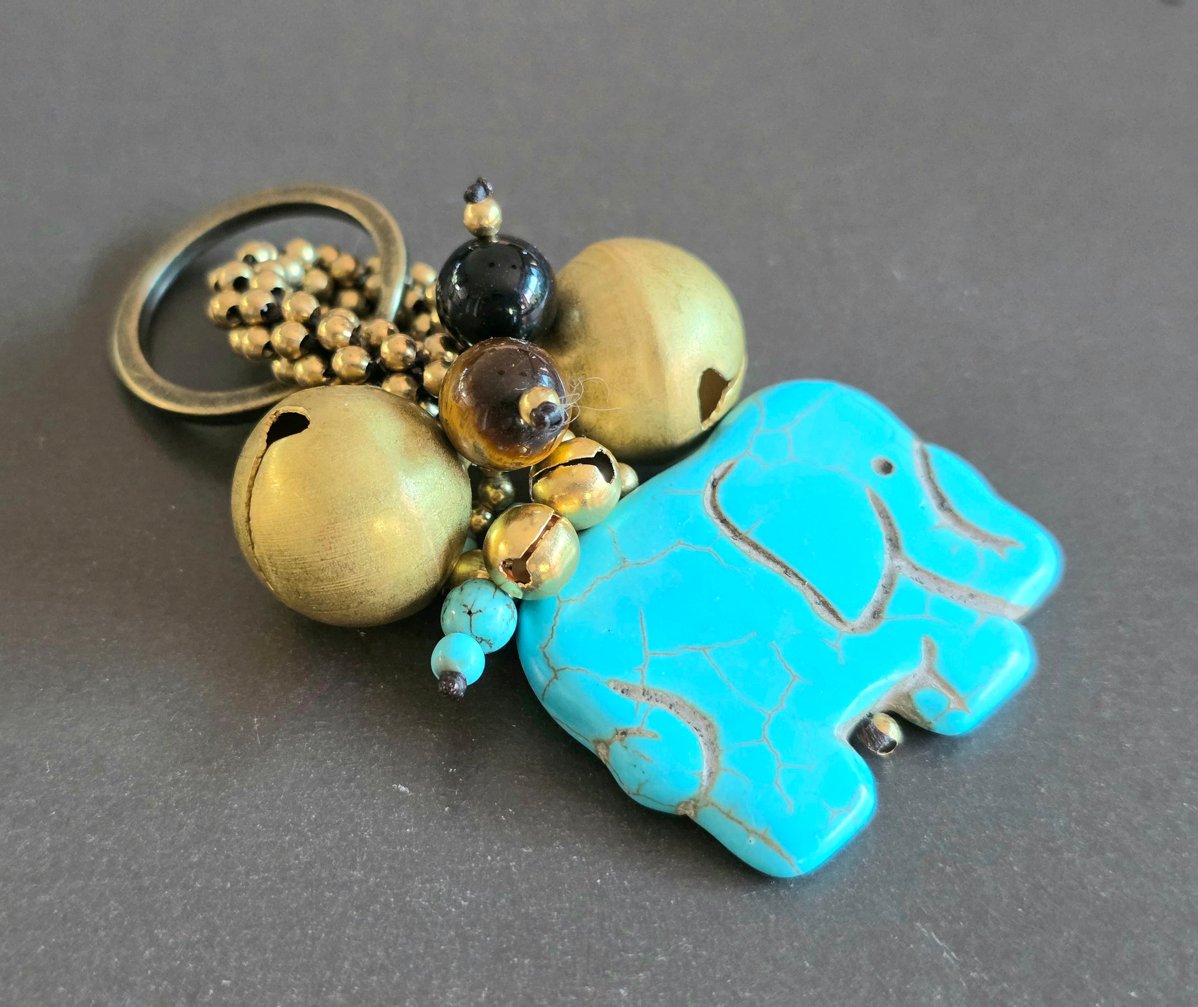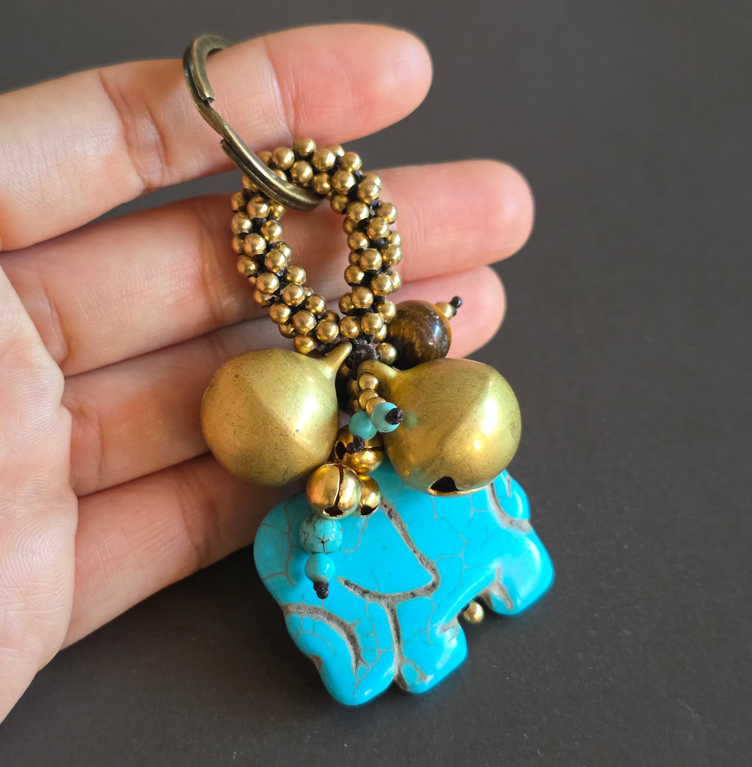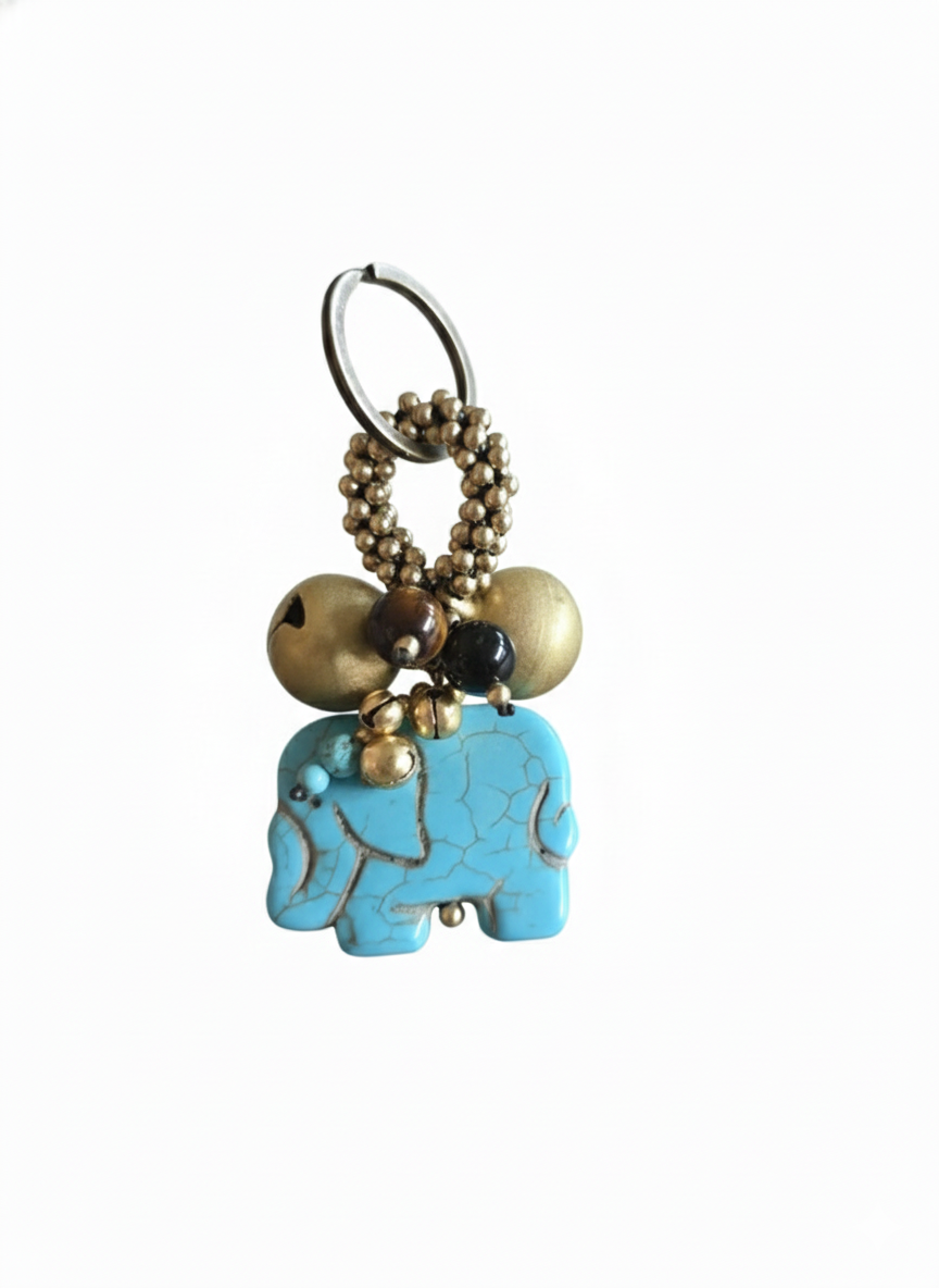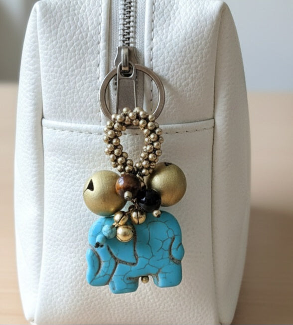 Elephant Jingle Bells Beads Keychain , Bells Keyring,ss Beads Keychain, Gifts for Women, Brass Bells, Stone Keychain, Ethnic Keyring, Bag Charm, Bag Accessory