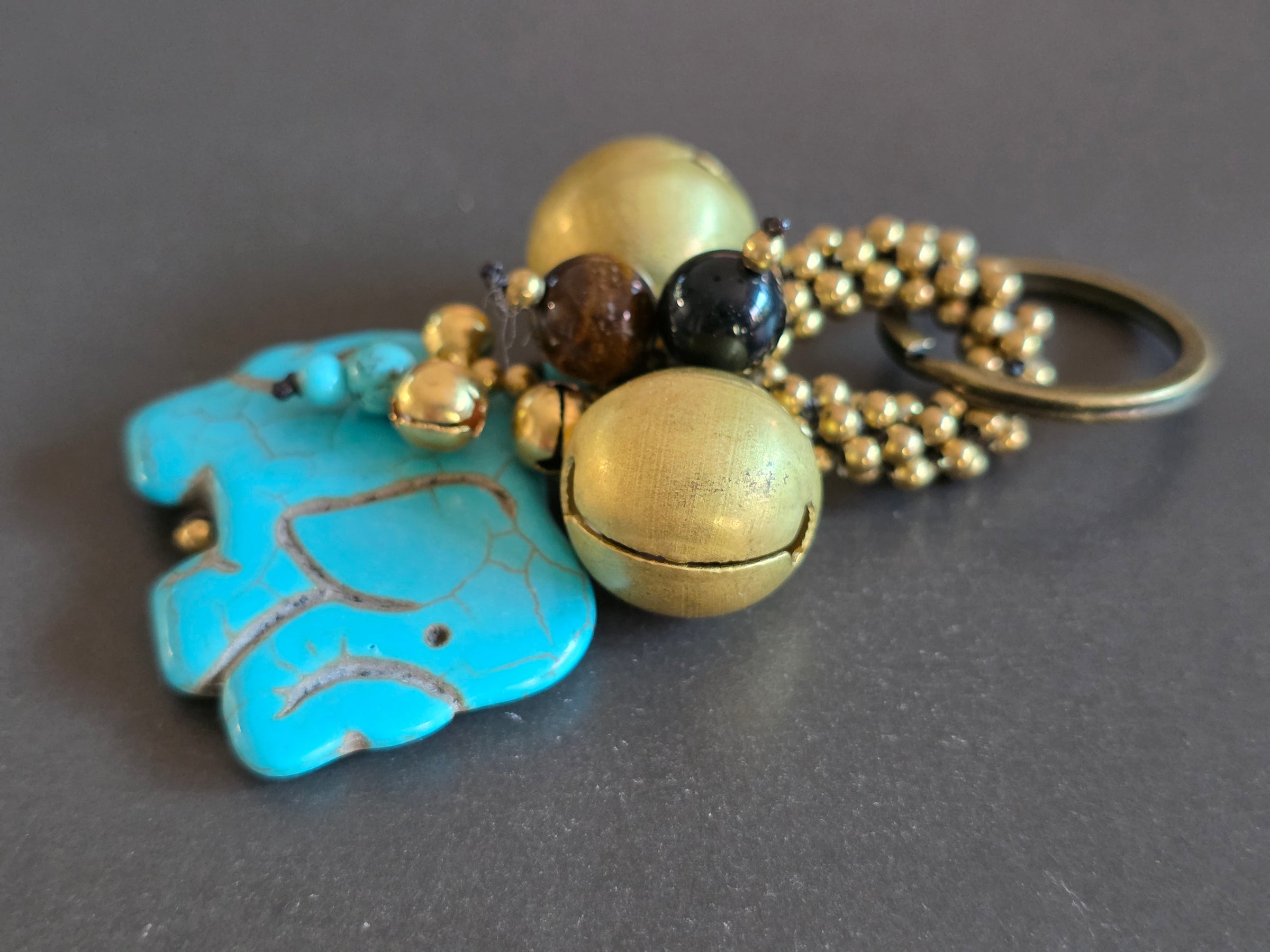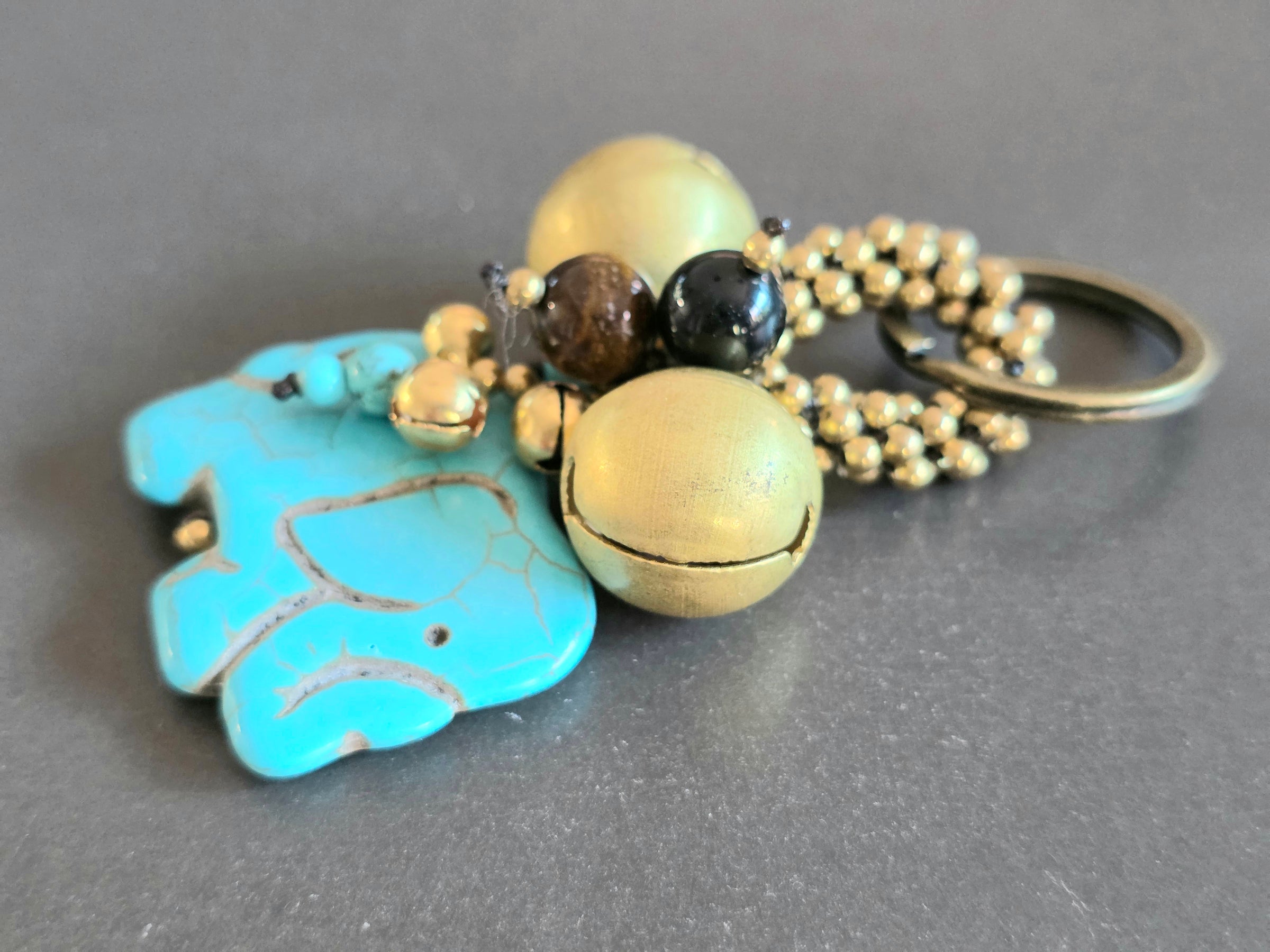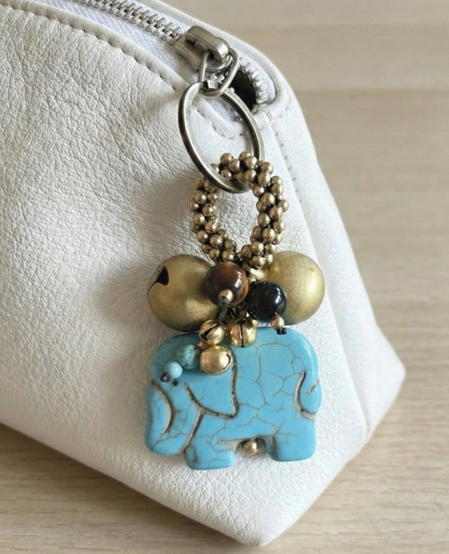 Elephant Jingle Bells Beads Keychain , Bells Keyring,ss Beads Keychain, Gifts for Women, Brass Bells, Stone Keychain, Ethnic Keyring, Bag Charm, Bag Accessory