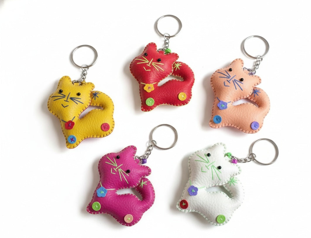 Set of 5 Thai PU Cat Keychain Bag Keyring Holder