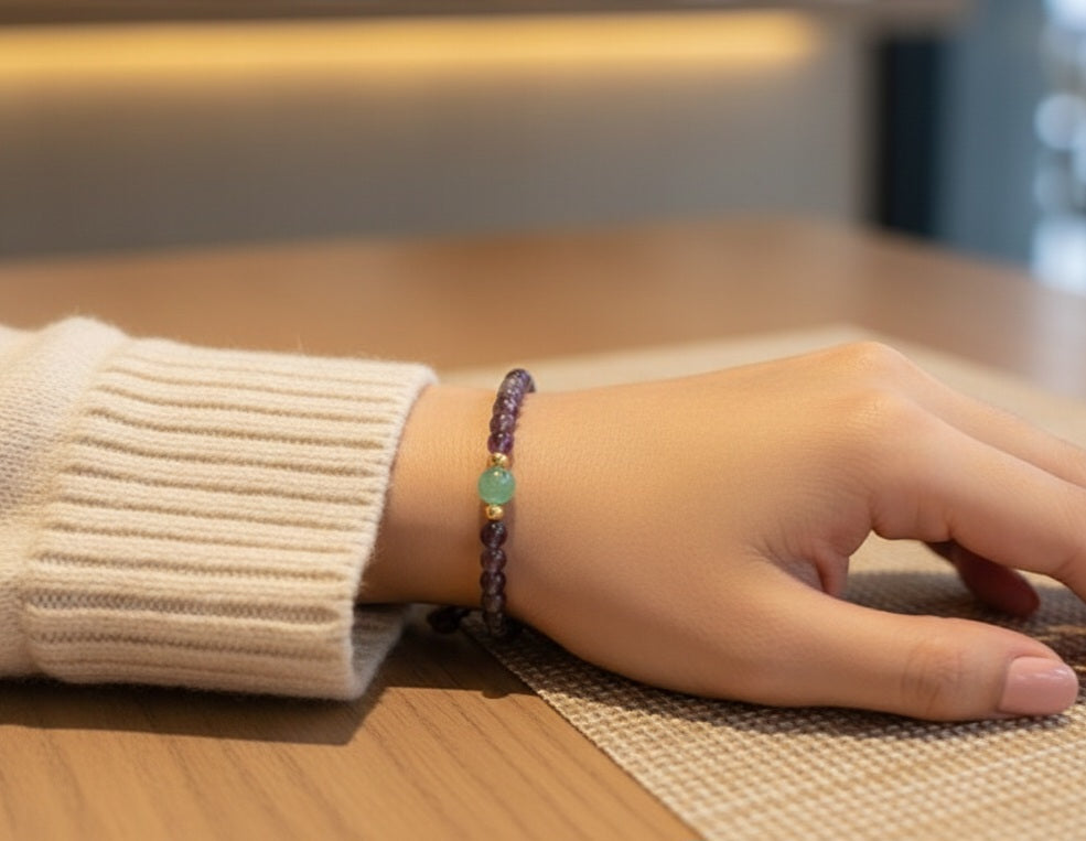 Amethyst Single Jade Natural Stone Adjustable Chain Bracelet Anklet Choker Necklace , Stone Bracelet, Unisex Bracelet, Chain Anklet