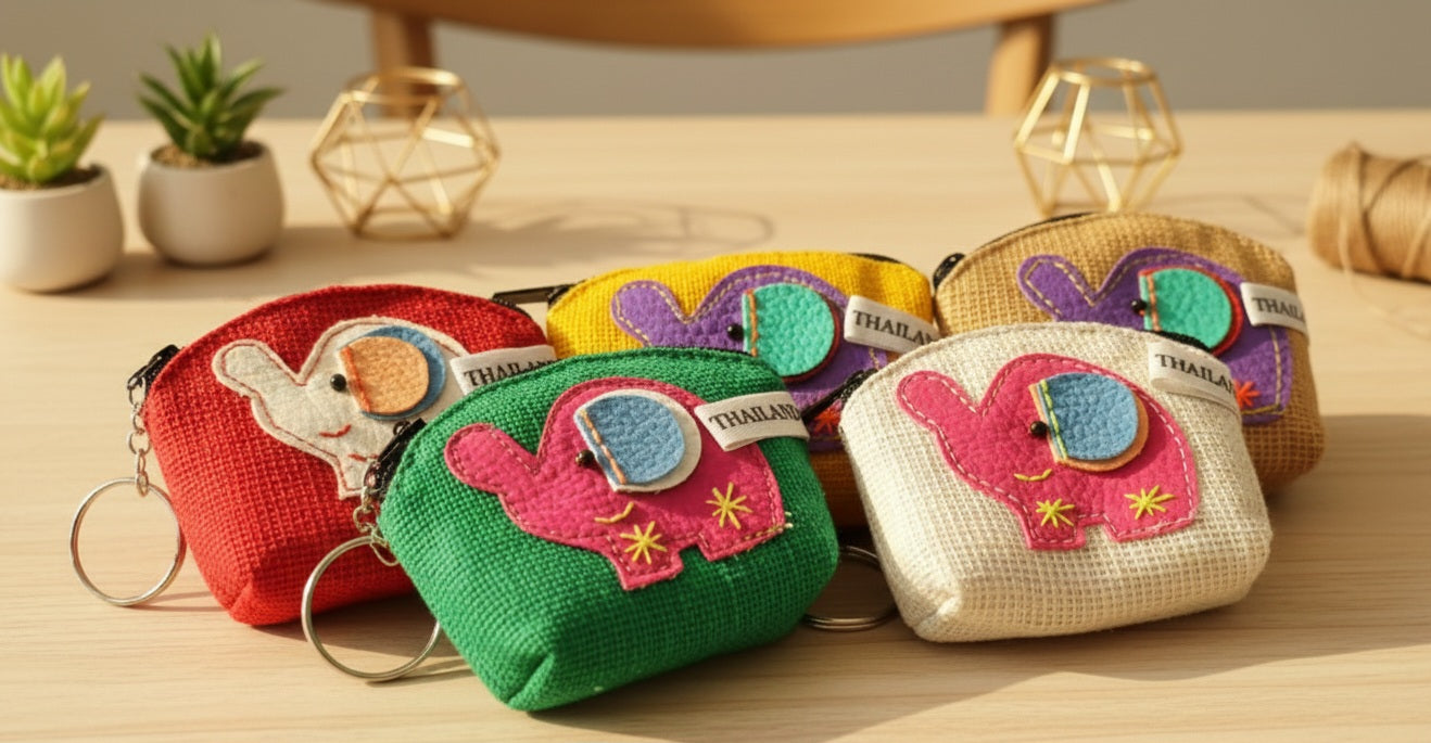 Jewelry Pouch , Set of 5 Handmade Silk Elephant Coin Purse With Zipper ,Gift, Women ,Elephant Pouch