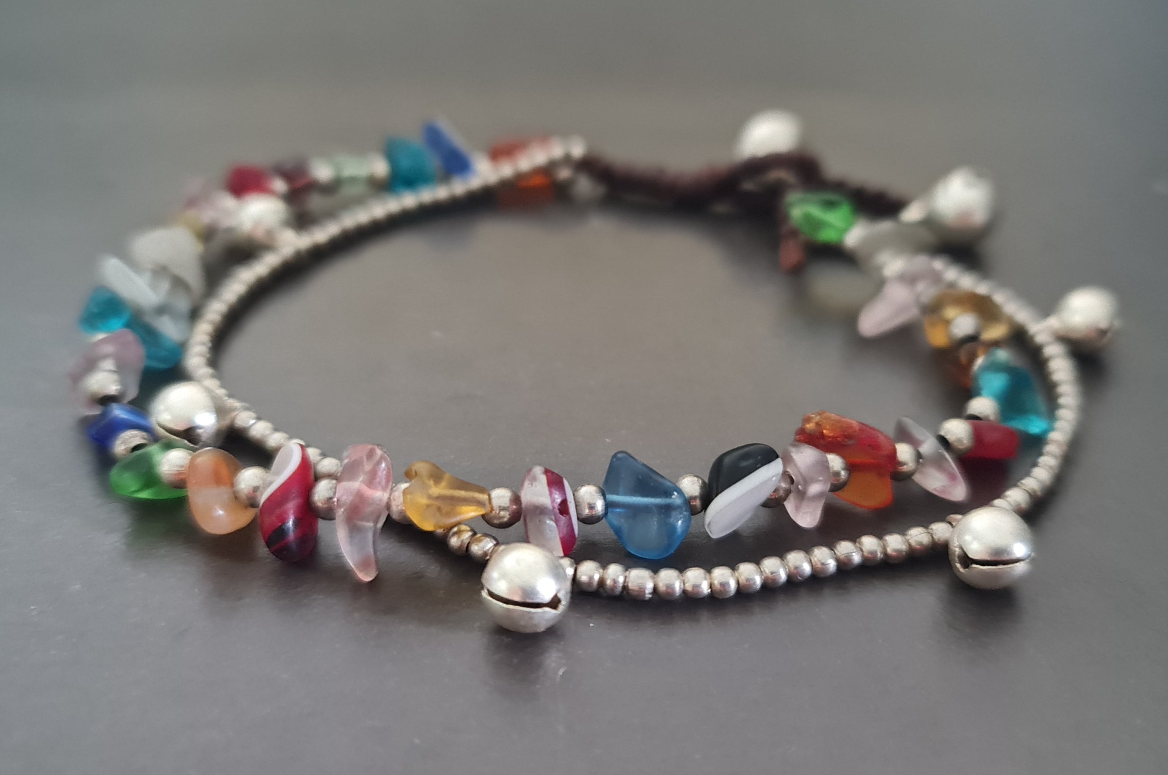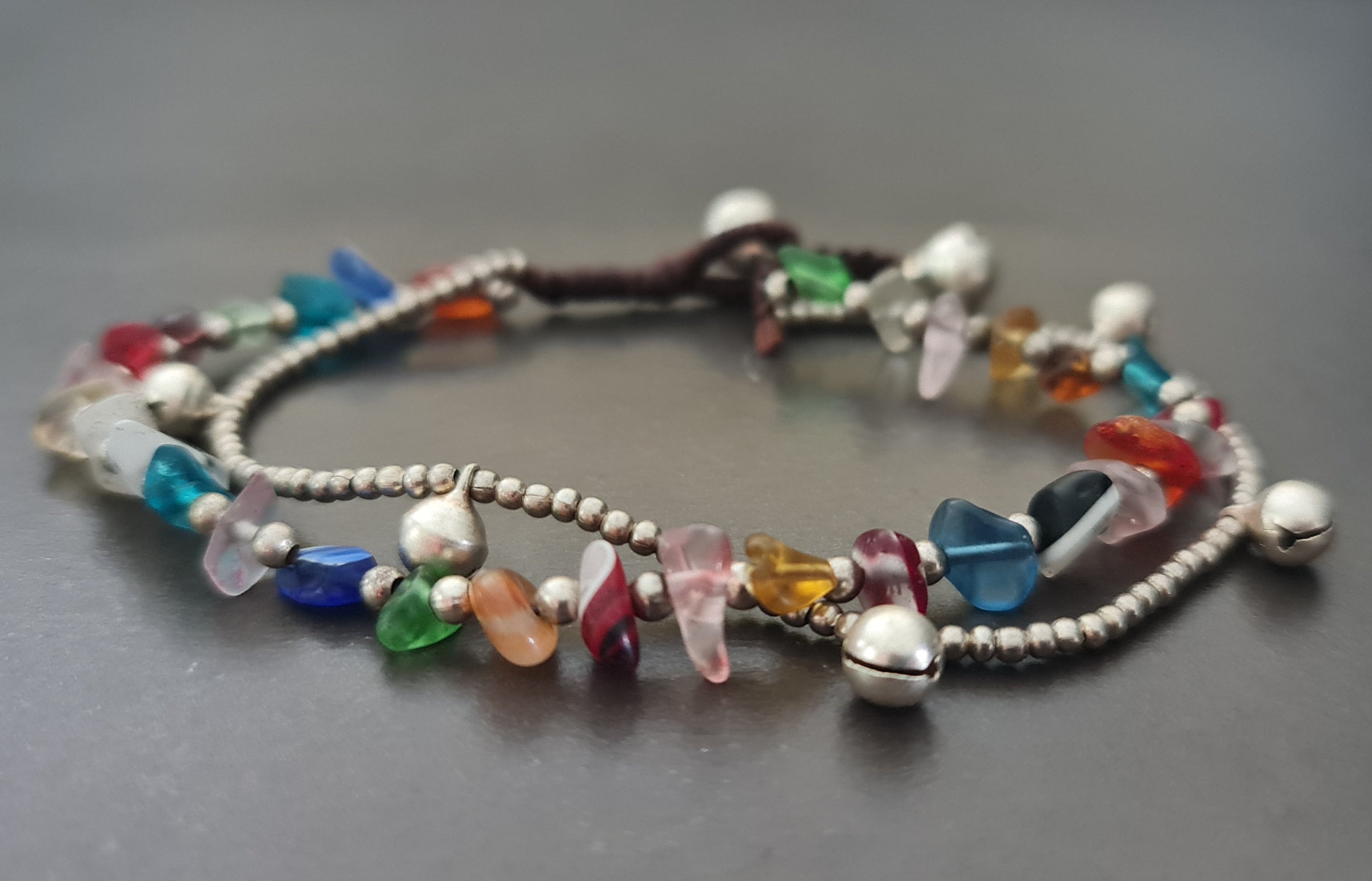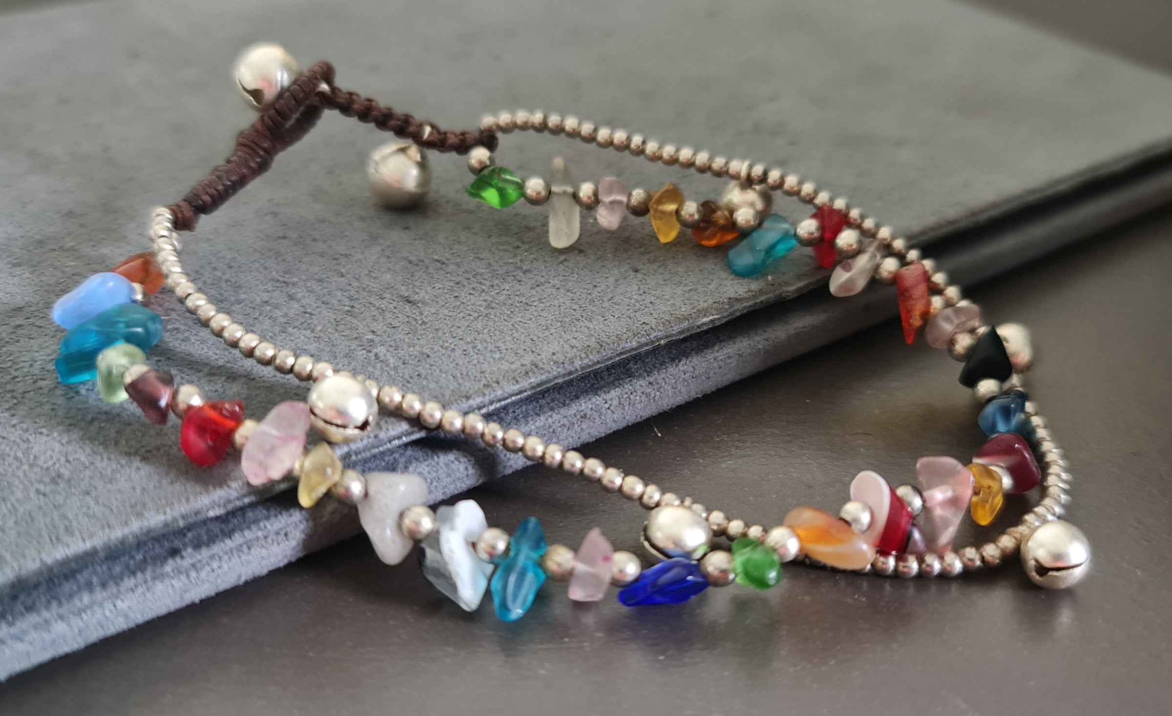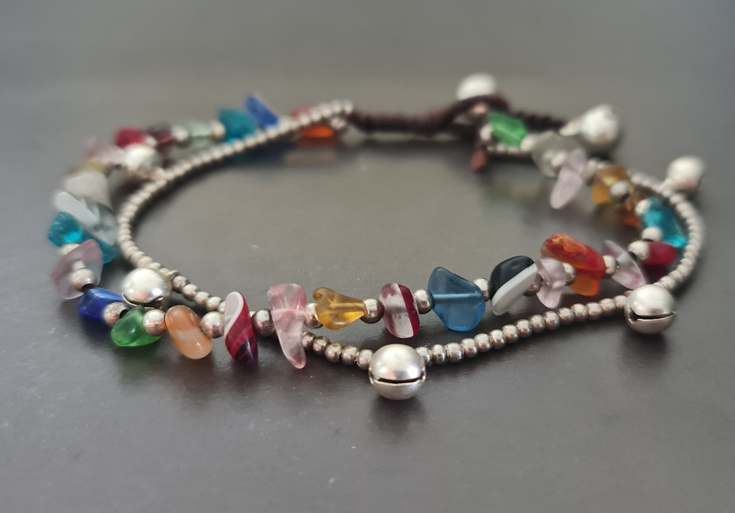 Women Jewelry Mixed Chip Stone Silver Beads Chain Bracelet Anklet, Women Anklet, Chain Bracelets